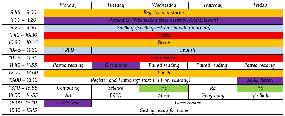 This is our timetable for Spring 1: